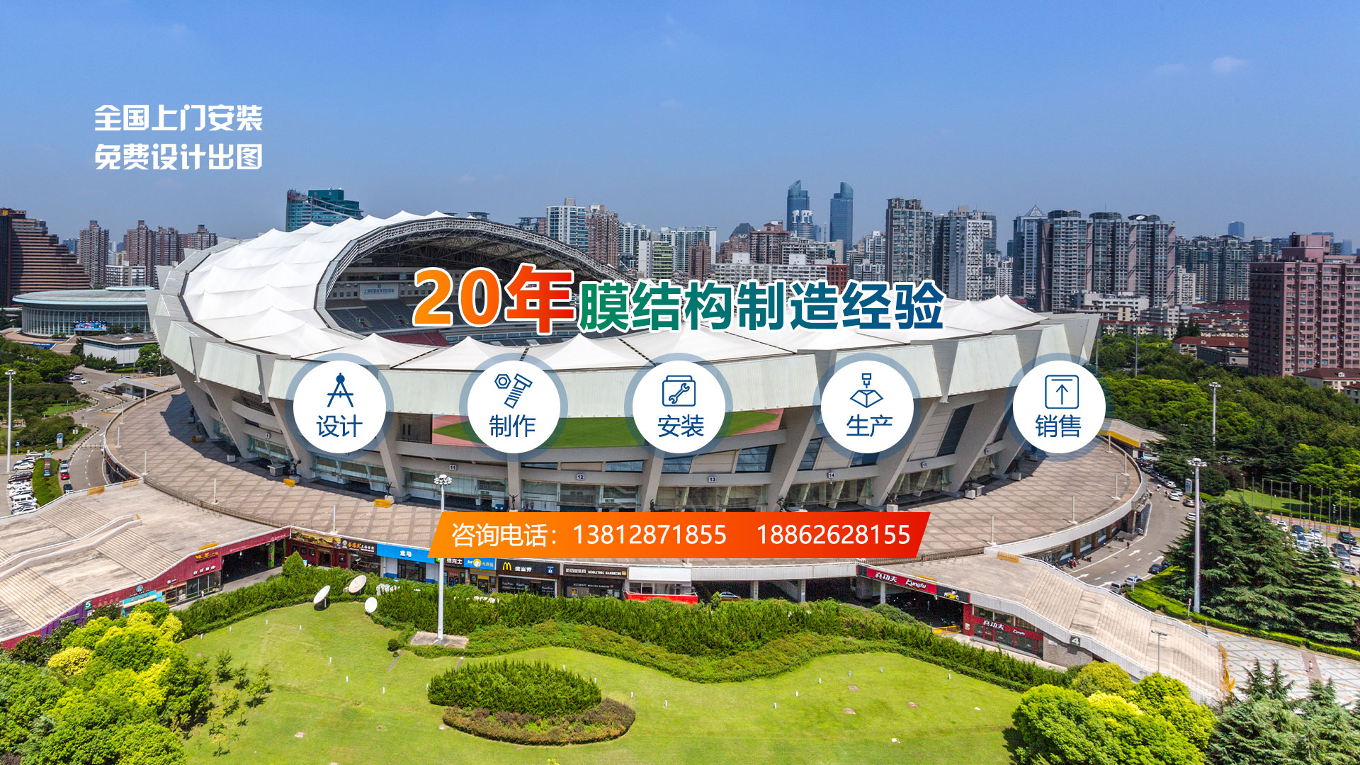 江蘇鵬達膜結構工程有限公司從事鋼膜結構設計、制作、安裝、生產、銷售。本公司擁有現代化標準加工車間為其它鋼結構公司、膜結構公司、膜結構安裝隊提供大梁、異形鋼梁加工 ,提供膜材加工、批發 ,擁有各種進口、國產膜材供客戶選擇。經營項目涉及張拉膜、骨架膜結構、景觀膜結構、高速公路膜結構收費站、體育場看臺膜結構、膜結構停車棚、遮陽膜結構設施、充電樁、鋼結構廠房,玻璃雨棚、伸縮推拉篷等方面。公司全體員工本著堅持技術進步的方針,對所有作業程序都進行嚴格控制,確保為客戶提供良好的工程質量和售后服務。并將以齊全的技術設備、良好的產品質量、完善的施工隊伍、嚴謹的工作作風,極高的工作效率的為廣大客戶提供良好的精品工程。
